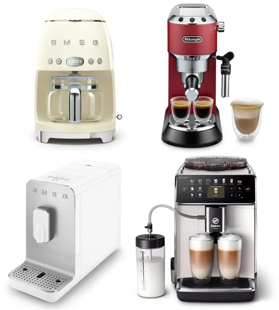 Odkryj świat doskonałego smaku z nowoczesnymi ekspresami: Smeg DCF02CREU, DeLonghi Dedica EC685.R, Smeg BCC11WHMEU, Saeco GranAroma SM6580/20